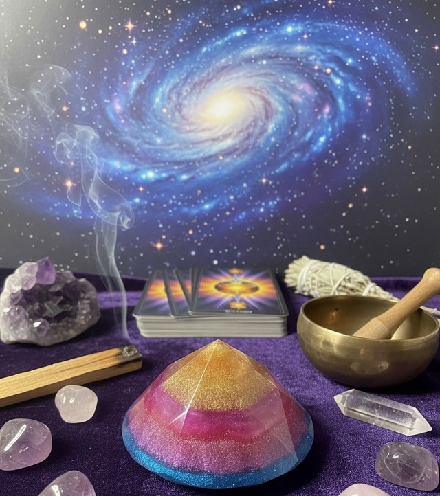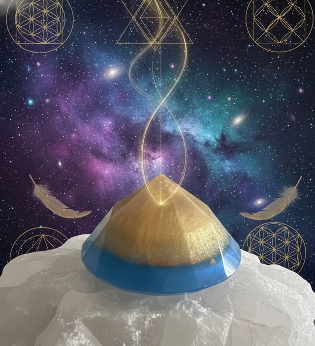 宇宙の神秘と高次のエネルギーを凝縮したような、神秘的なピラミッド型オルゴナイトです。 輝くゴールドと深く澄んだブルーのバイカラーは、まるで宇宙に浮かぶ恒星と母なる地球の調和を象徴しているかのようです。 このピラミッドは、お部屋に置くだけで空間のエネルギーを整えます。 日々の瞑想のパートナーとして、あるいはインテリアの主役として。視覚的な美しさと実用性を兼ね備えたこのアイテムが、あなたの暮らしに穏やかな安らぎとポジティブな輝きをもたらします。大切な方への、心に寄り添う贈り物としても最適です。