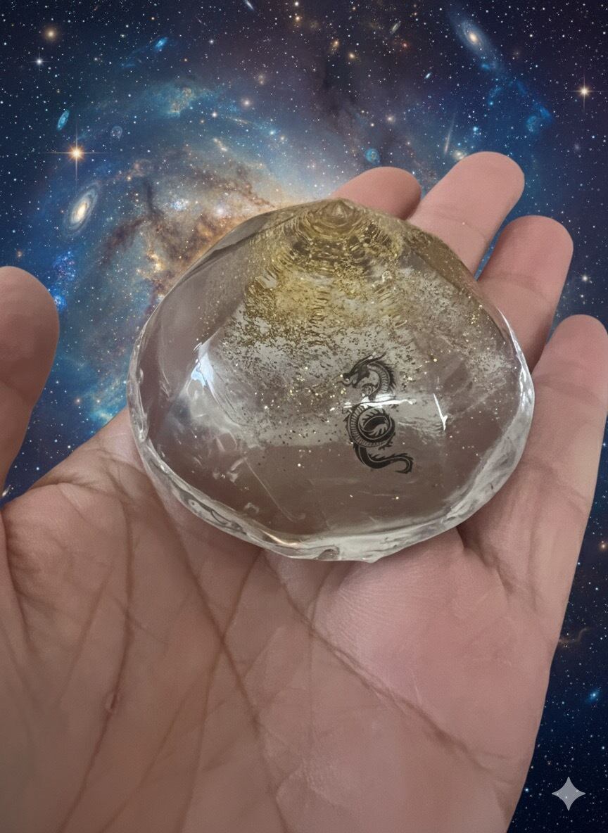 このオルゴナイトは、宇宙の壮大なエネルギーを凝縮しています。内に輝く金の煌めきは、最高の波動を引き寄せ、周囲のネガティブなエネルギーを強力に浄化します。