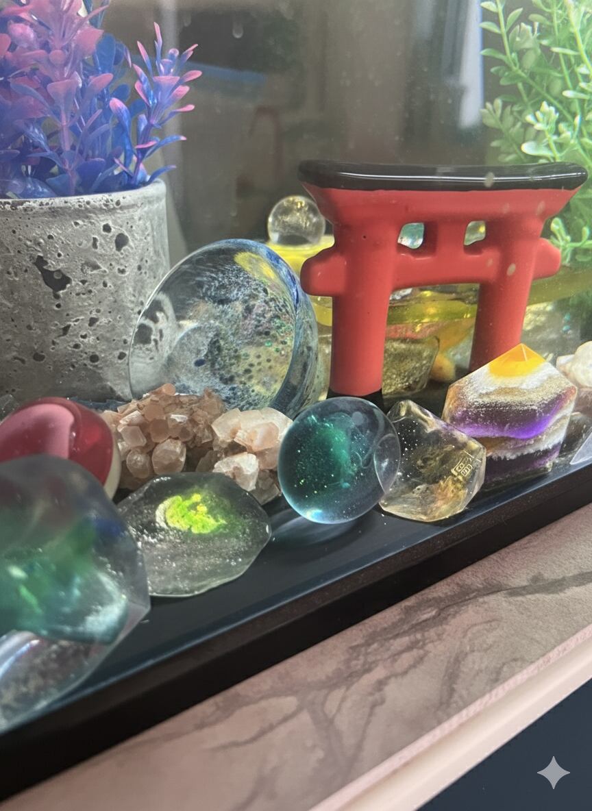 置きポイント→玄関、寝室、観葉植物の周り(根っこ部分)水槽のインテリア(水の循環は気の巡りに直結します)