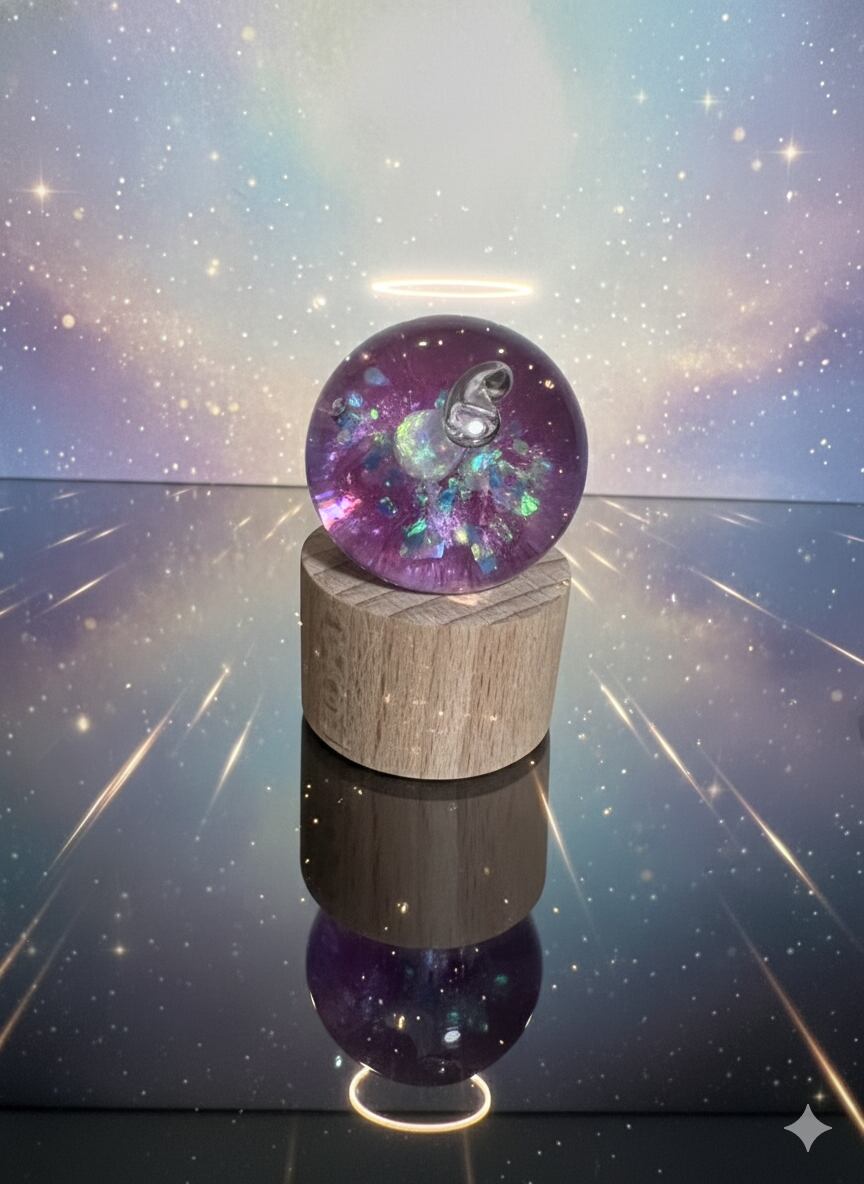 この開運玉の中には、フローライトの輝く欠片が閉じ込められています。フローライトは「天才の石」とも呼ばれ、繁栄への道のりを阻む心の霧を晴らし、真の才能とインスピレーションを開花させると言われています。持ち主の意識を高次のレベルへと引き上げ、願望実現の派生的なチャンスを次々と呼び込みます。