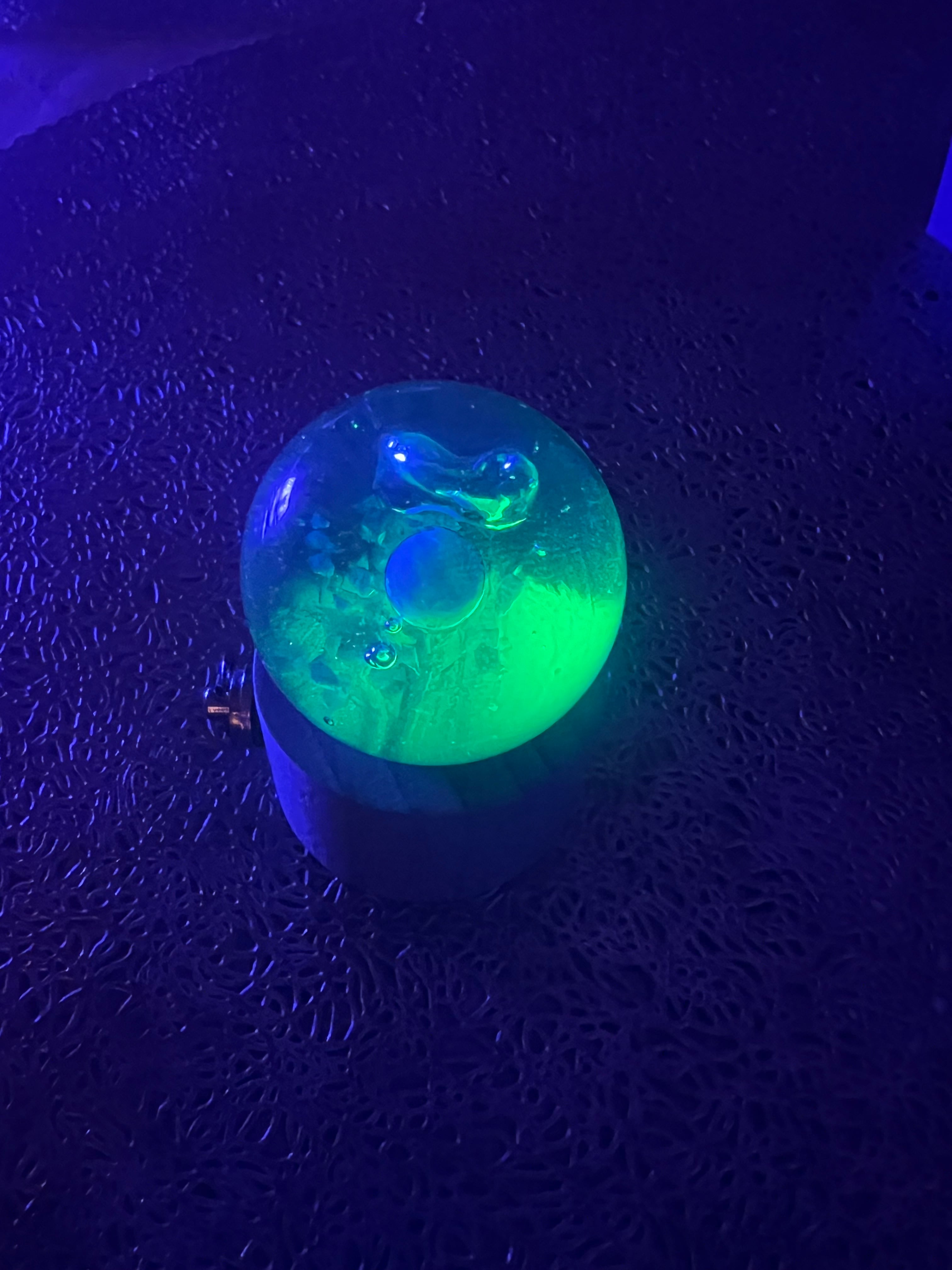 そして、この開運玉の秘密は、木製の台座にあります。台座のリングを回せば4色に輝く仕掛け、宇宙の四元素(地・水・火・風)あるいは、チャクラのバランスを象徴しています。色を変えるたびに、その瞬間にあなたが必要とするエネルギー(情熱、癒し、創造性、安定など)をチャージし、あなたの運気を常に最良の状態へと調整します