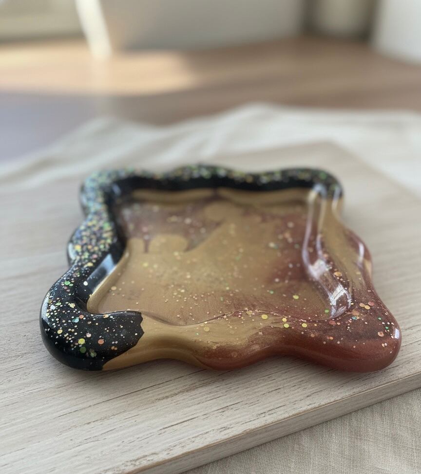 豊かさのエネルギーが波打つようにデザインされた、ラグジュアリーなヒーリングトレイです。流動的なゴールドのラインは、停滞した運気を動かし、幸運の波を引き寄せる「豊穣の河」をイメージしています。